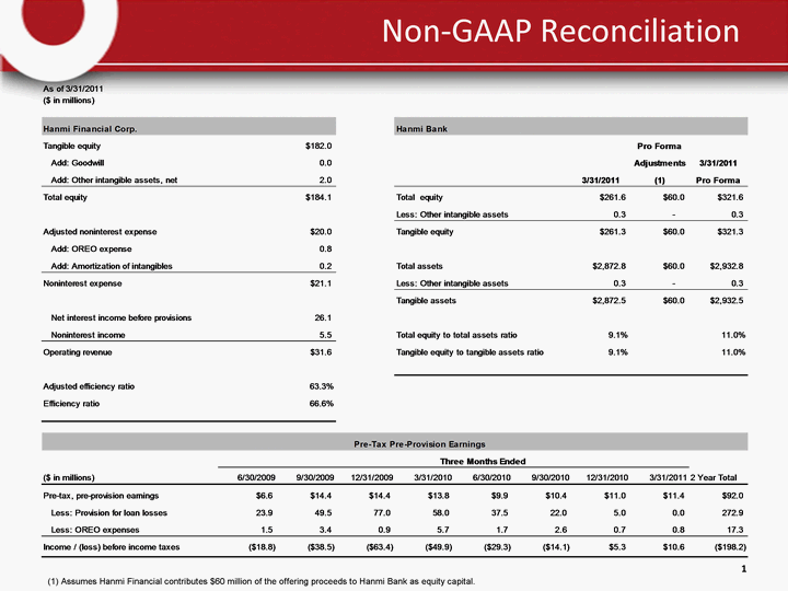 (1) Assumes Hanmi Financial contributes $60 million of the offering proceeds to Hanmi Bank as equity capital.