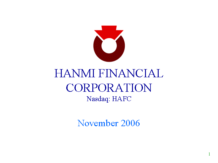 | HANMI FINANCIAL CORPORATION Nasdaq: HAFC November 2006 |