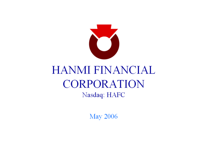 | HANMI FINANCIAL CORPORATION Nasdaq: HAFC May 2006 |