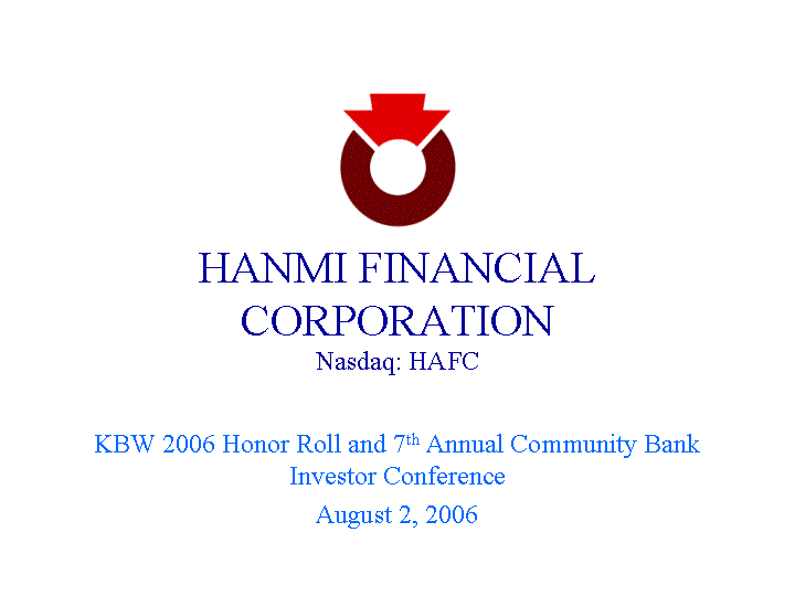 | HANMI FINANCIAL CORPORATION Nasdaq: HAFC KBW 2006 Honor Roll and 7th Annual Community Bank Investor Conference August 2, 2006 |