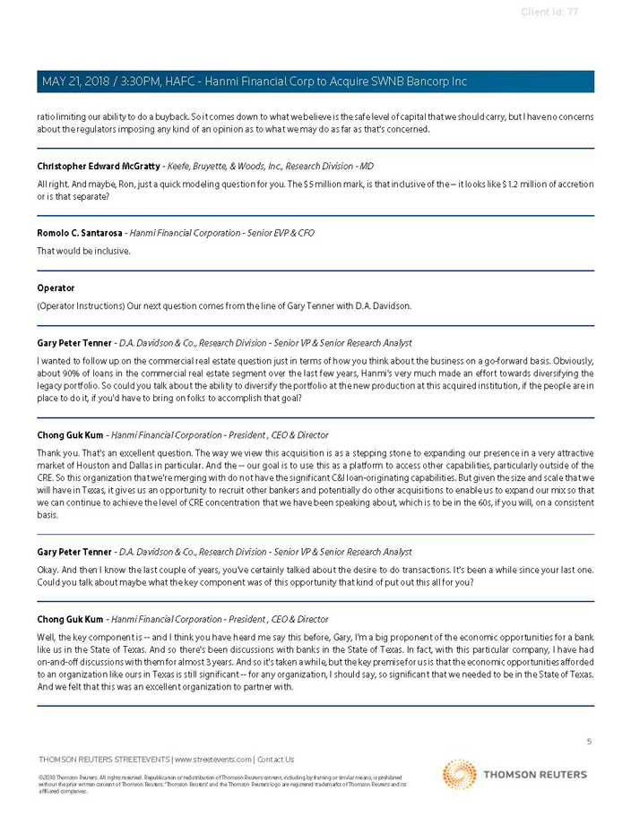 The following is a transcript of a conference call that was conducted on May 21, 2018.