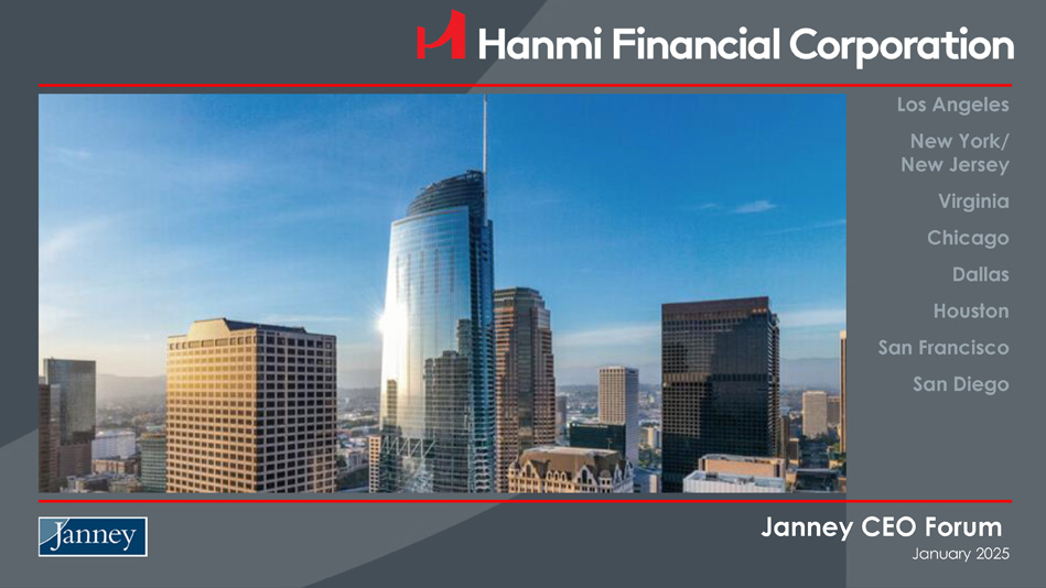 Janney CEO Forum January 2025 Los Angeles New York/ New Jersey Virginia Chicago Dallas Houston San Francisco San Diego