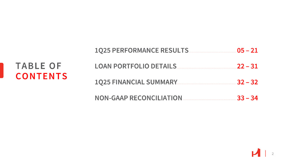 2 TABLE OF CONTENTS 1Q25 PERFORMANCE RESULTS 05 – 21 LOAN PORTFOLIO DETAILS 22 – 31 1Q25 FINANCIAL SUMMARY 32 – 32 NON - GAAP RECONCILIATION 33 – 34