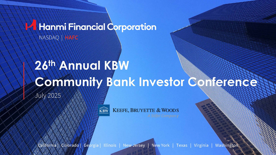 California | Colorado | Georgia | Illinois | New Jersey | New York | Texas | Virginia | Washington 26 th Annual KBW Community Bank Investor Conference July 2025 NASDAQ | HAFC