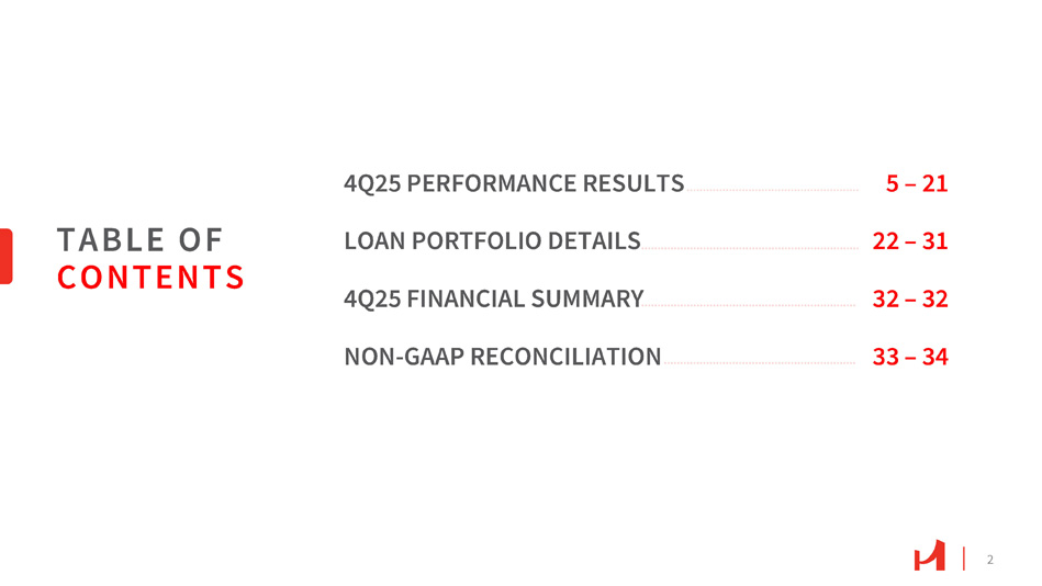 2 TABLE OF CONTENTS 4Q25 PERFORMANCE RESULTS 5 – 21 LOAN PORTFOLIO DETAILS 22 – 31 4Q25 FINANCIAL SUMMARY 32 – 32 NON - GAAP RECONCILIATION 33 – 34